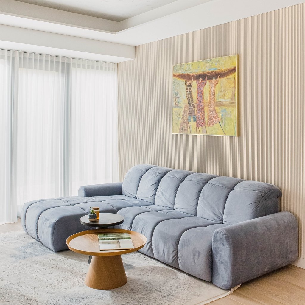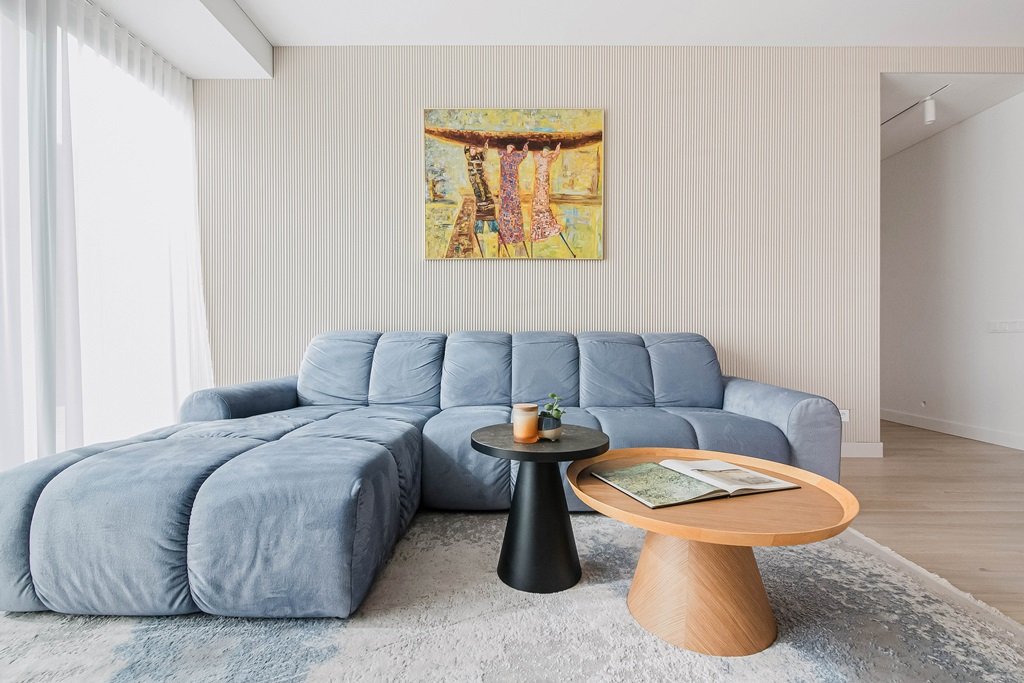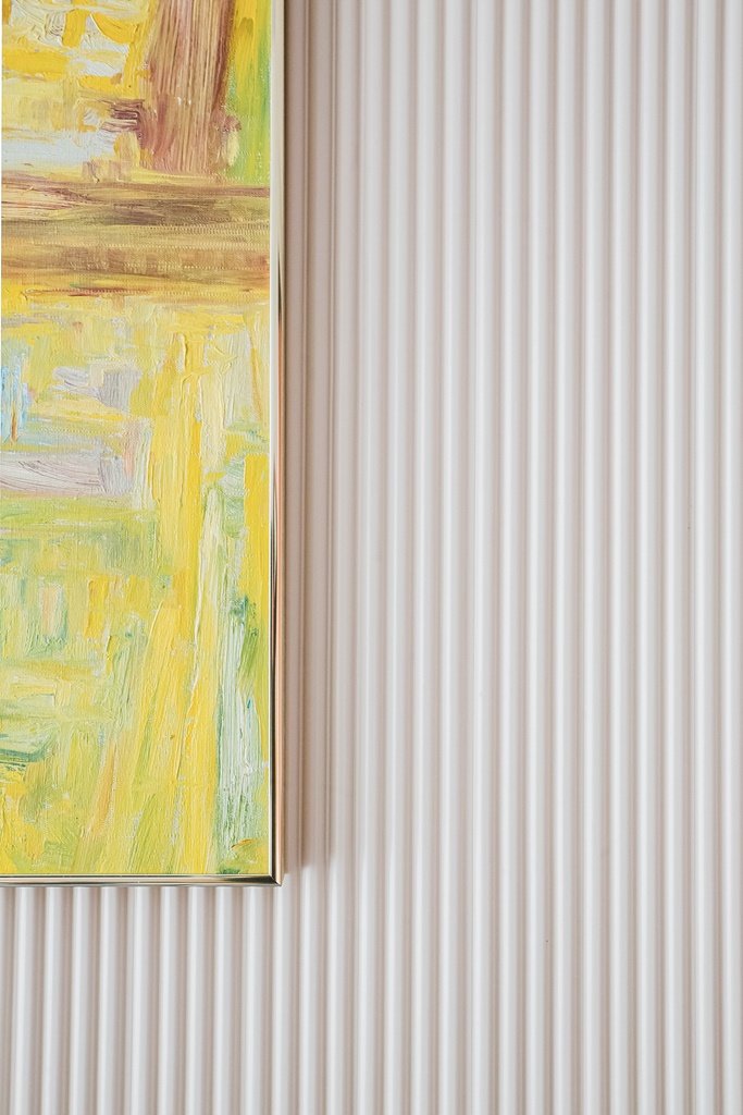 Objektas - Butas. Sprendimas - bangelės imitacijos medinė danga, kuri nudažyta individualiu atspalviu. Architektai puikiai suderino akcentus iš šios dangos, kuri sukuria sienos struktūriškumą, su lygiai lubų ir baldų paviršiais. Ypatinga savybė, kurią turi ši danga, kad ji gali būti panaudojama kaip akcentas, tačiau jis nėra toks ryškus ir viską užgožiantis.
