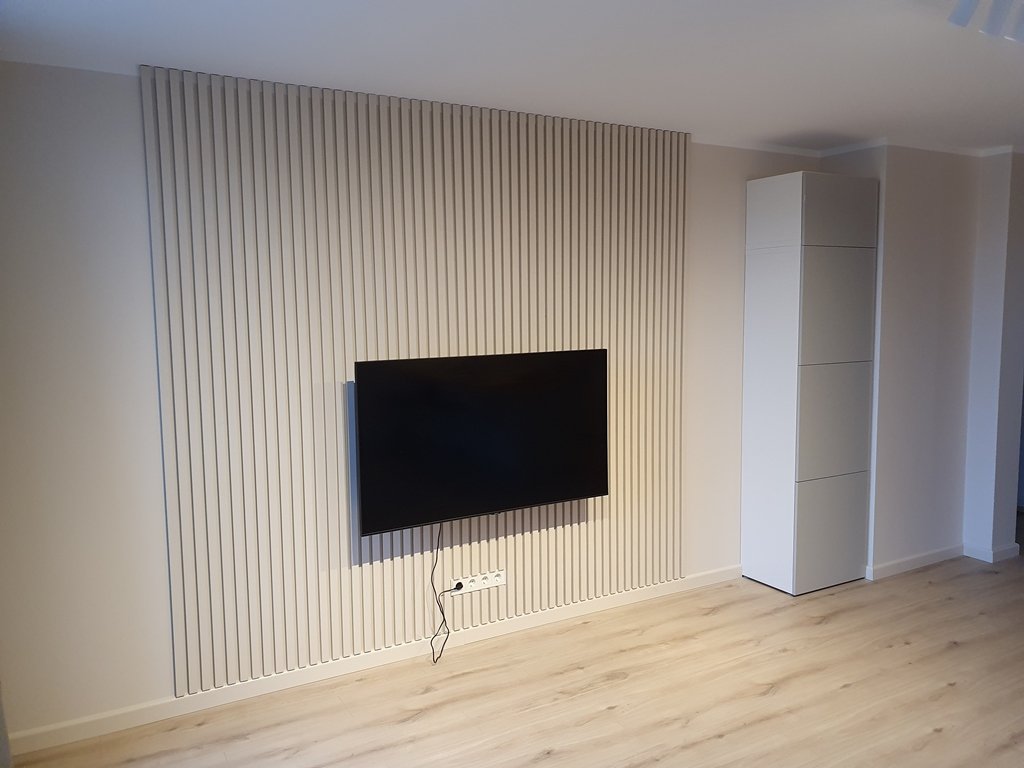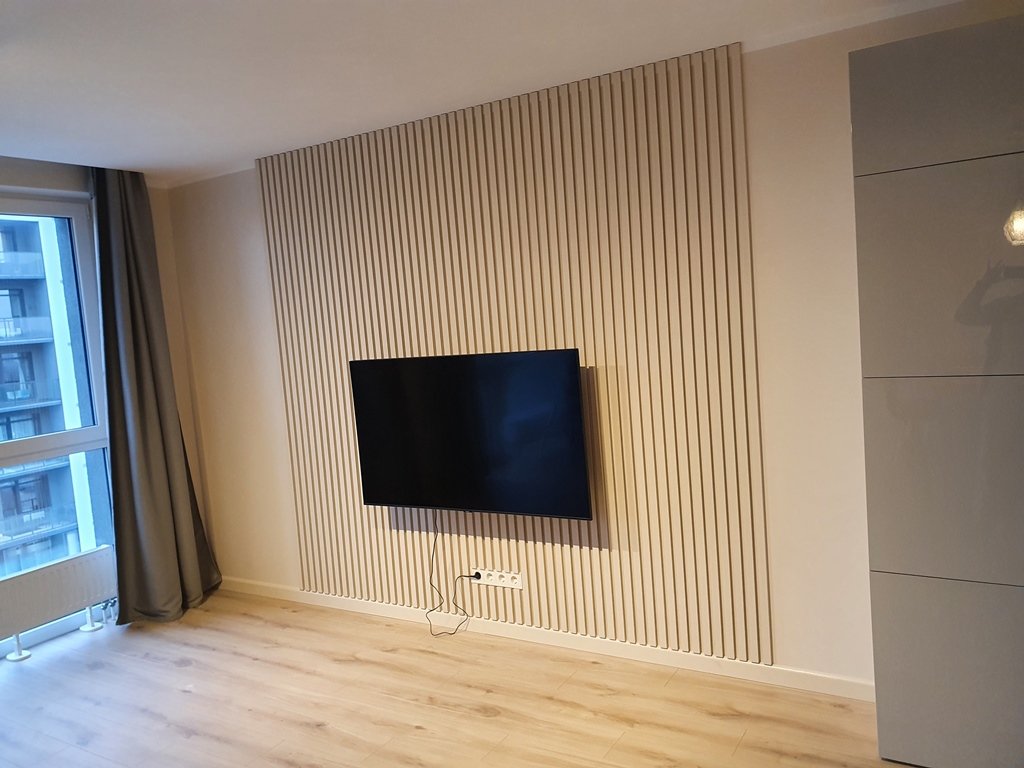 Sienų dangoms yra daug nestandartinių sprendimų, nereikia apsiriboti vien tik gipso ir dažymo pasiūlymais. Apdailai gali būti panaudotos ir jau paruoštos plokštės, kurios surenkamos ir joms nereikia jokių purvinų darbų. Tokias plokštes taip pat nesudėtinga dekoruoti ant viršaus, kad ir tokiu principu kaip šiame objekte - bruseliais.