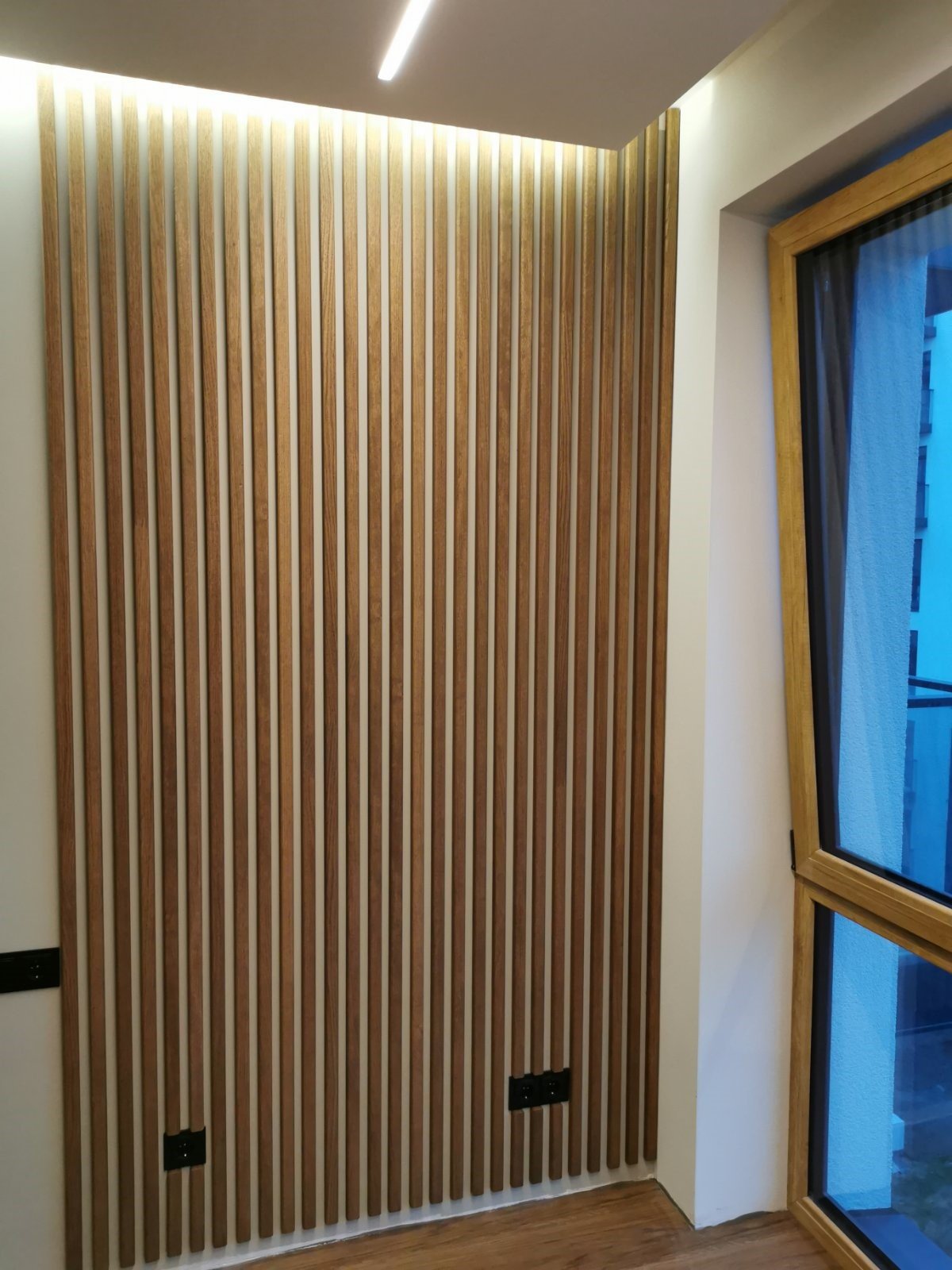 Populiari interjero apdailos tendencija - sienų dekoravimas mediniais tašeliais. Renkantis tokią sienų apdailą svarbu įvertinti kelis aspektus - lentelių plotį, storį ir aukštį, tarpus tarp jų ir pagrindo, prie kurio bus tvirtinama spalvą.